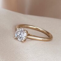 It features a G colour, VS2 clarity centre Diamond that guarantees sparkle with every movement! It has a delicate 18ct Yellow Gold shank for that added touch of luxury. It is beautifully held in a classic four-claw setting with a contemporary twist. The four claws of this ring are also set in 18ct Yellow Gold, which visually enhance the Diamond by adding warmth and contrast!