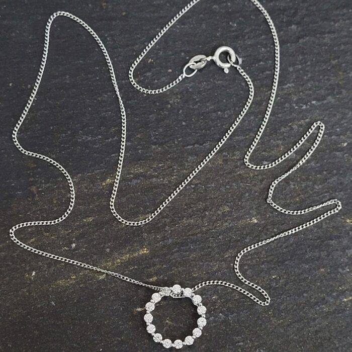 This beautiful circle design pendant is crafted in 18ct White Gold and set with 0.40ct brilliant cut diamonds – a really striking piece!