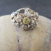 The intricate head of the ring is shaped like a flower and set with rose cut diamonds that are befitting of it’s aged pedigree. Suitable as a dress ring or a cocktail ring, it is very eye catching and boasts a wonderful combination of gemstones!