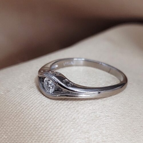 This is a beautiful, eye-catching ring that commands attention in a striking way! Traditionally, most Diamond ring settings use claws to hold the Diamond in its position. However, this results in more visible metal surfaces and places less focus on the Diamond. Carefully designed bezel settings are created with an airy and open look to create the illusion of a suspended Diamond in mid air. The term "floating" is also sometimes used to describe this look, which makes sense because it really can feel like it does. In this novel and ultra-sleek looking ring, the exquisite centre Diamond is literally held between two halves of the ring's band, giving it a beautifully symmetrical look. Another advantage of this setting is that it allows more light to enter uninterrupted into the Diamond for much more sparkle. This makes it the perfect setting to hold this 0.15ct Diamond, really allowing it's H colour and VS1 clarity to shine through. The floating diamond style is striking in it’s simplicity, and the addition of a platinum setting, completes the luxurious and contemporary profile of this outstanding ring! Total carat weight: 0.15ct Gemstones: Diamond: 0.15ct Colour: H Clarity: VS1 Metal: Platinum Weight: 3.98g Height off finger: 3.73mm Size: L Can be resized: Yes Condition: Excellent Box: Item will be boxed, any antique box shown is not included. All carat weights are approximate.
